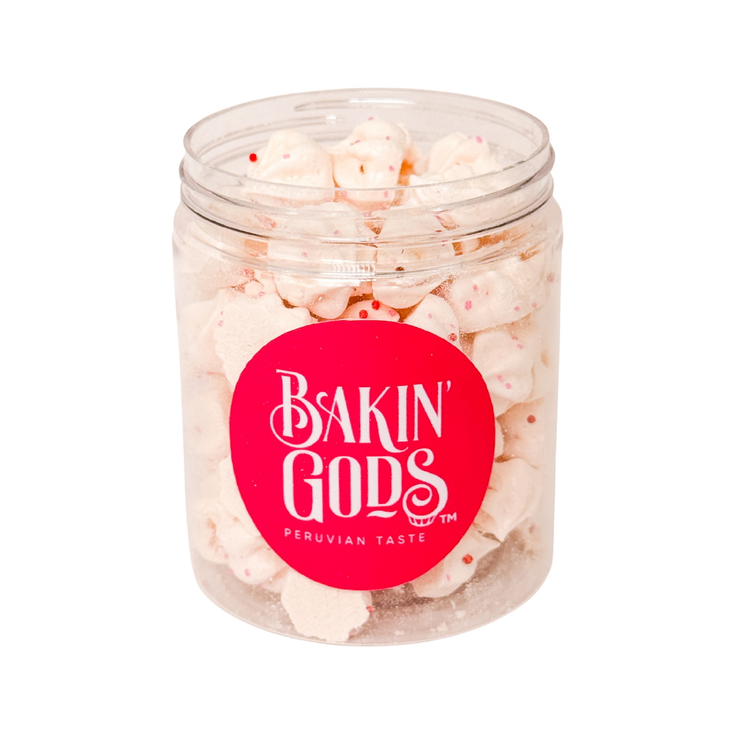 Cada frasco de 8 oz contiene 25 g de merenguitos. Empaque reutilizable (lavado a mano).